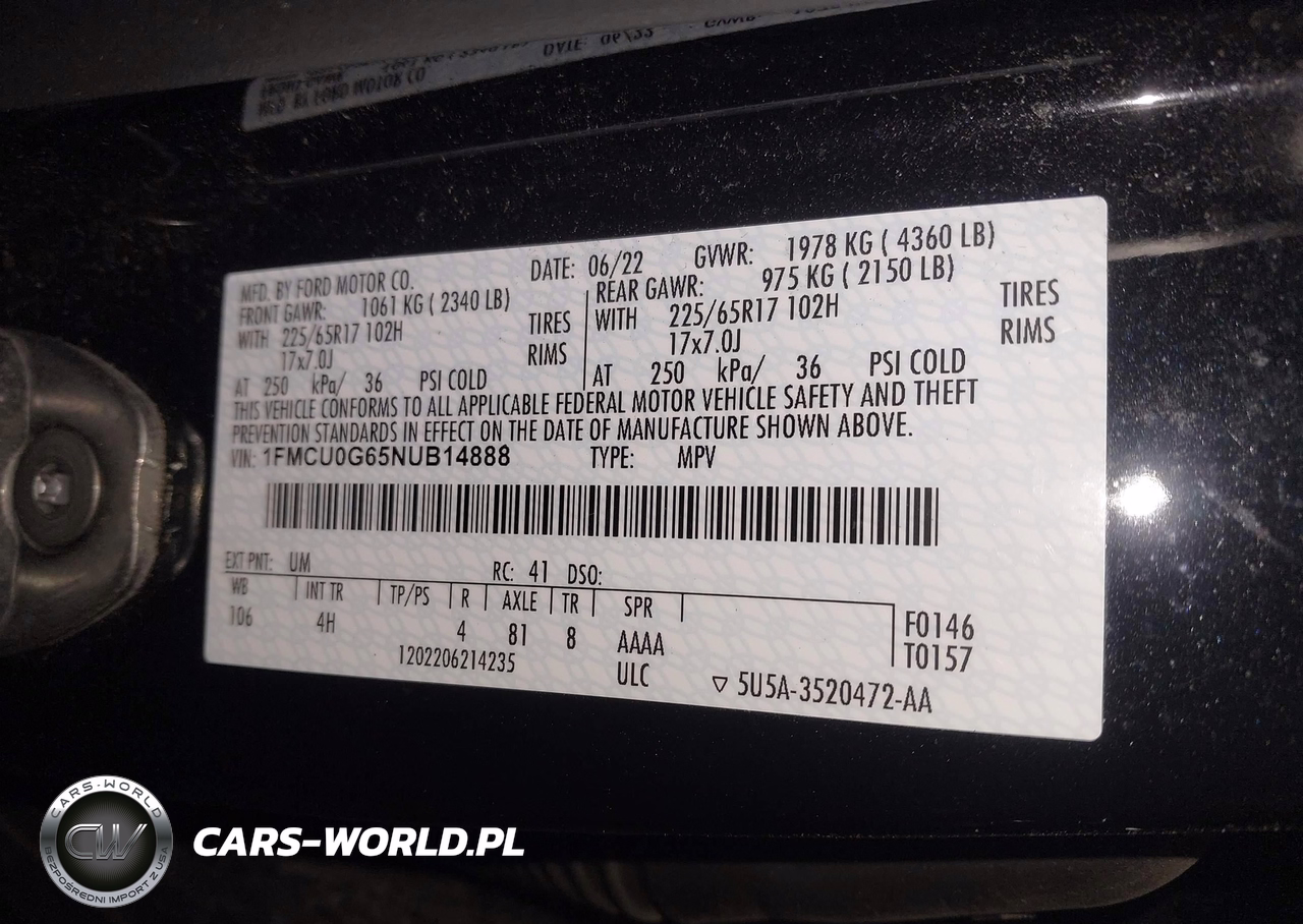 IAAI Nr: I-44668959 VIN: 1FMCU0G65NUB14888 Port: Indianapolis, IN