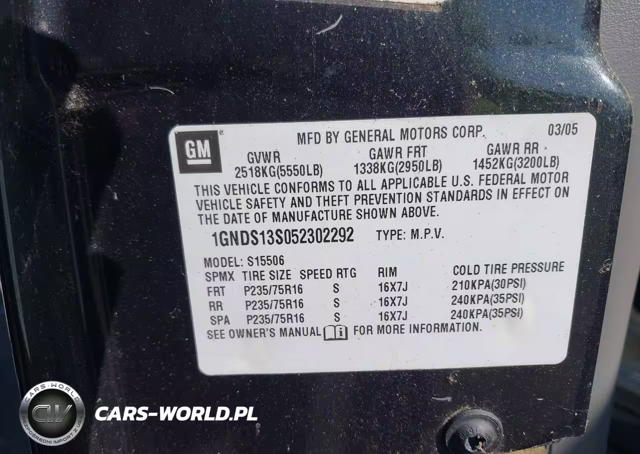 IAAI Nr: I-44669357 VIN: 1GNDS13S052302292 Port: Savannah, GA