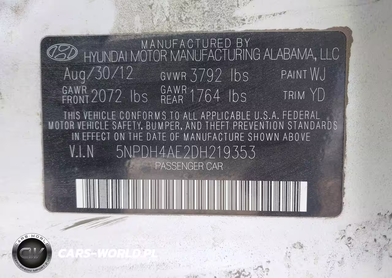 IAAI Nr: I-44669599 VIN: 5NPDH4AE2DH219353 Port: Elizabeth, NJ