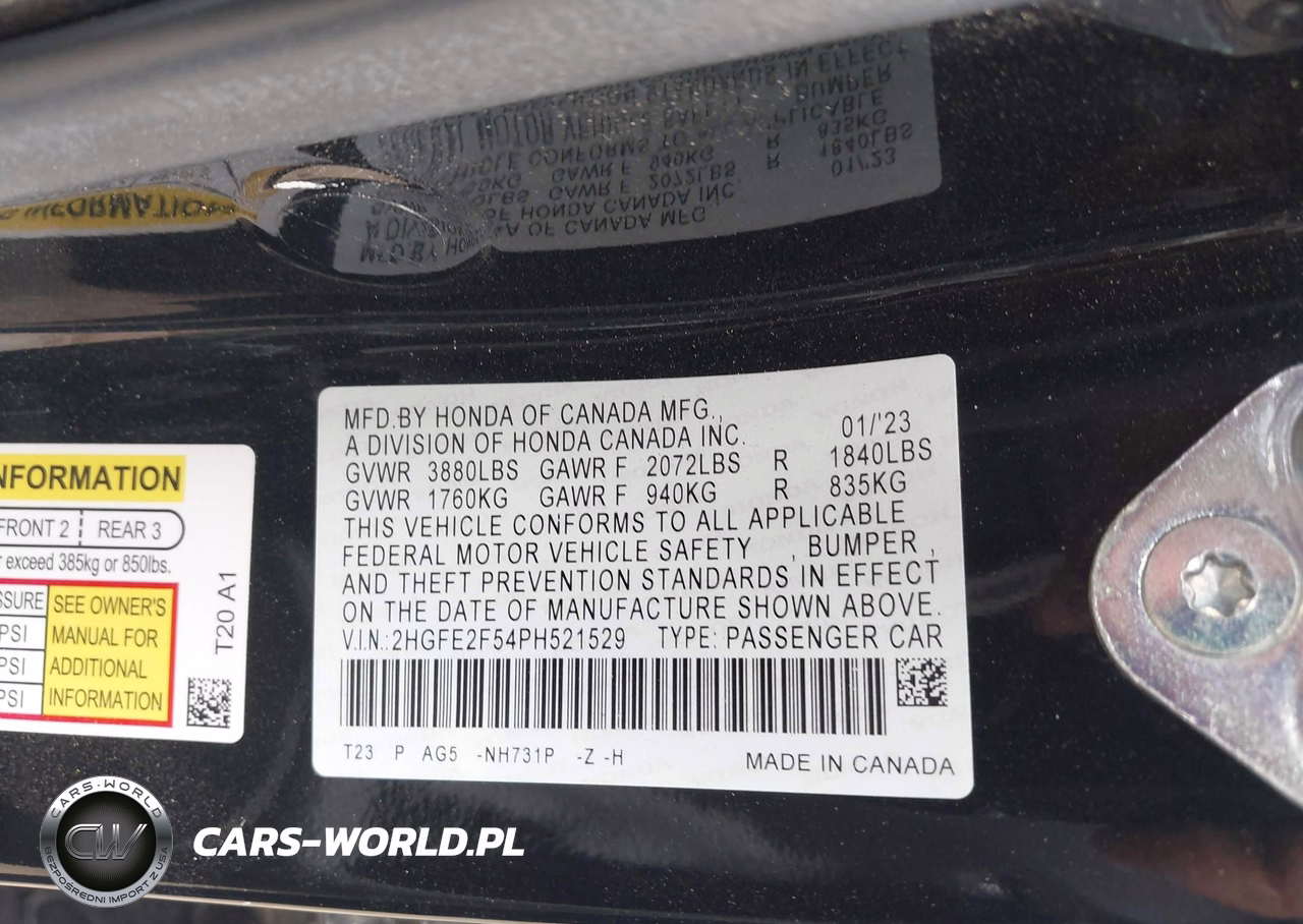 IAAI Nr: I-44671066 VIN: 2HGFE2F54PH521529 Port: Elizabeth, NJ