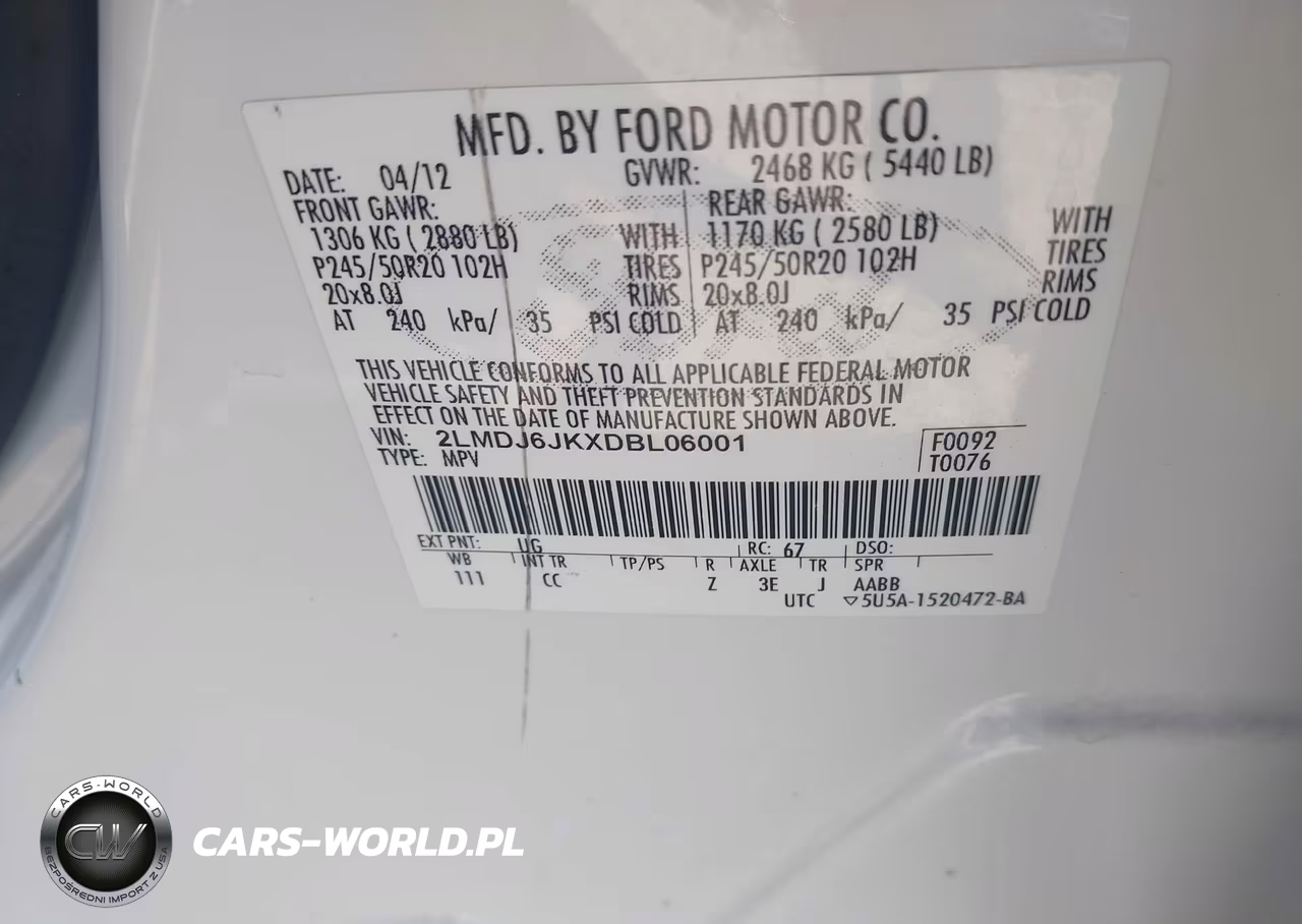 IAAI Nr: I-44671070 VIN: 2LMDJ6JKXDBL06001 Port: Houston, TX