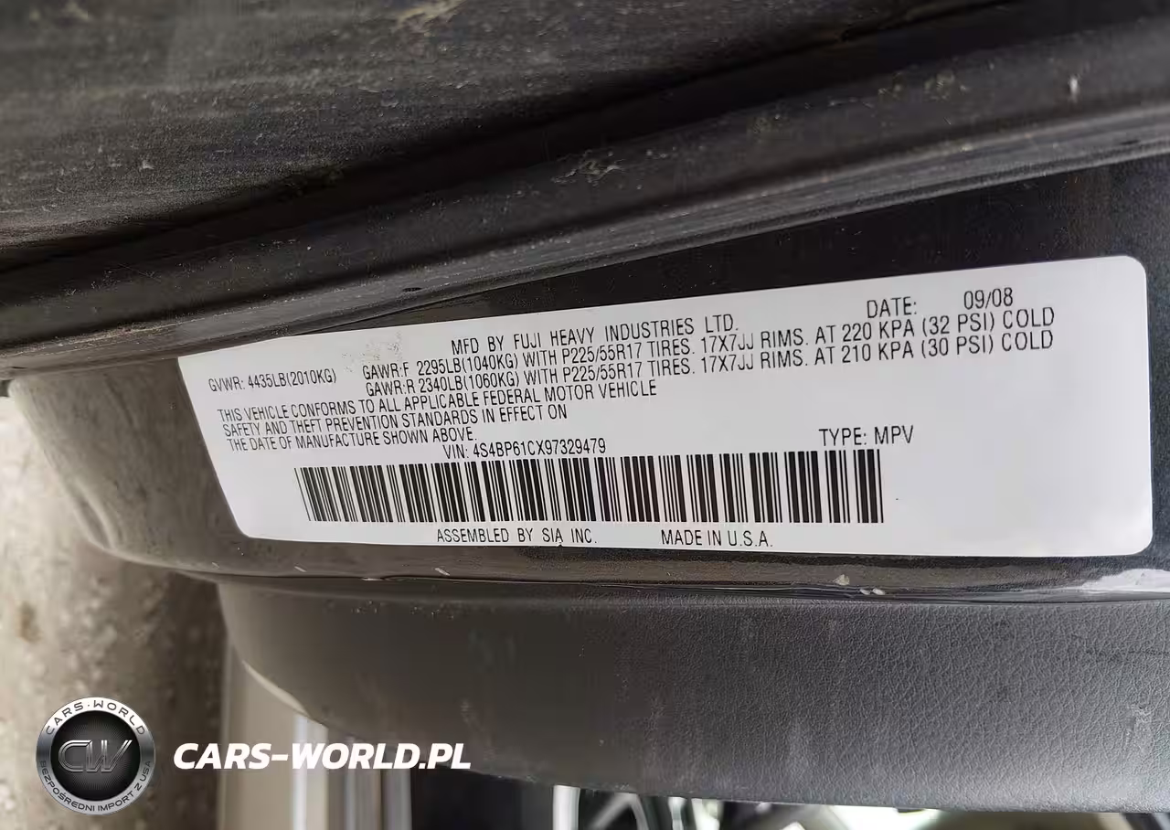 IAAI Nr: I-44671700 VIN: 4S4BP61CX97329479 Port: Indianapolis, IN