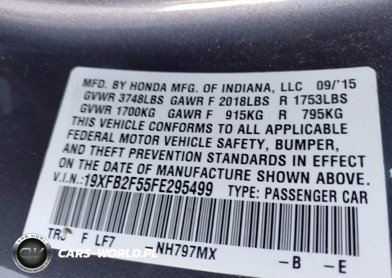 IAAI Nr: I-44671761 VIN: 19XFB2F55FE295499 Port: Savannah, GA