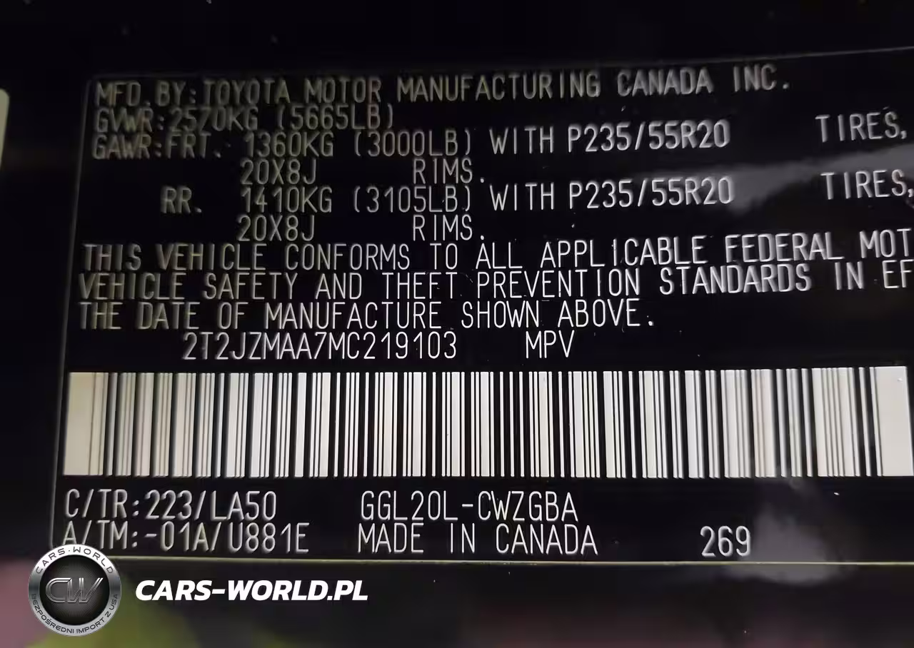 IAAI Nr: I-44672419 VIN: 2T2JZMAA7MC219103 Port: Elizabeth, NJ