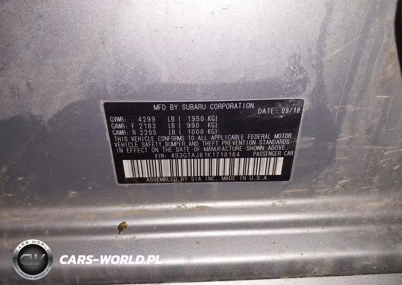 IAAI Nr: I-44672449 VIN: 4S3GTAJ61K1710164 Port: Indianapolis, IN