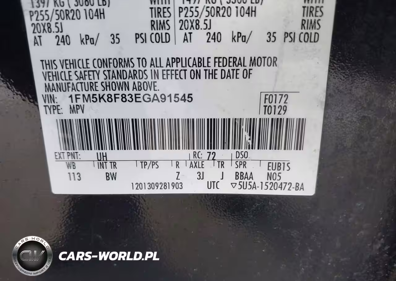 IAAI Nr: I-44672935 VIN: 1FM5K8F83EGA91545 Port: Savannah, GA