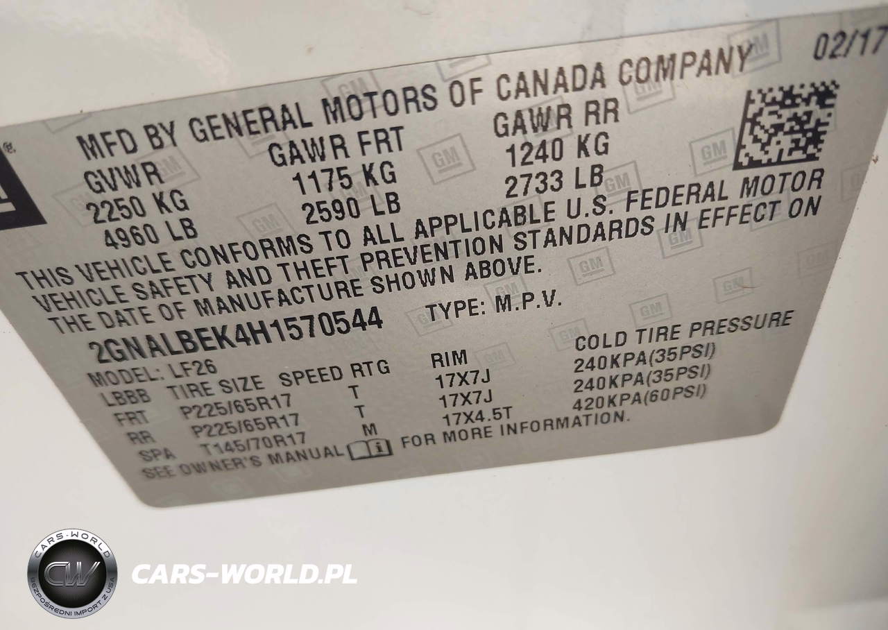 IAAI Nr: I-44673550 VIN: 2GNALBEK4H1570544 Port: Savannah, GA