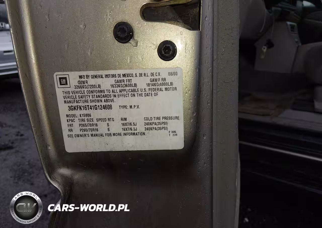 IAAI Nr: I-44673755 VIN: 3GKFK16T41G124608 Port: Elizabeth, NJ
