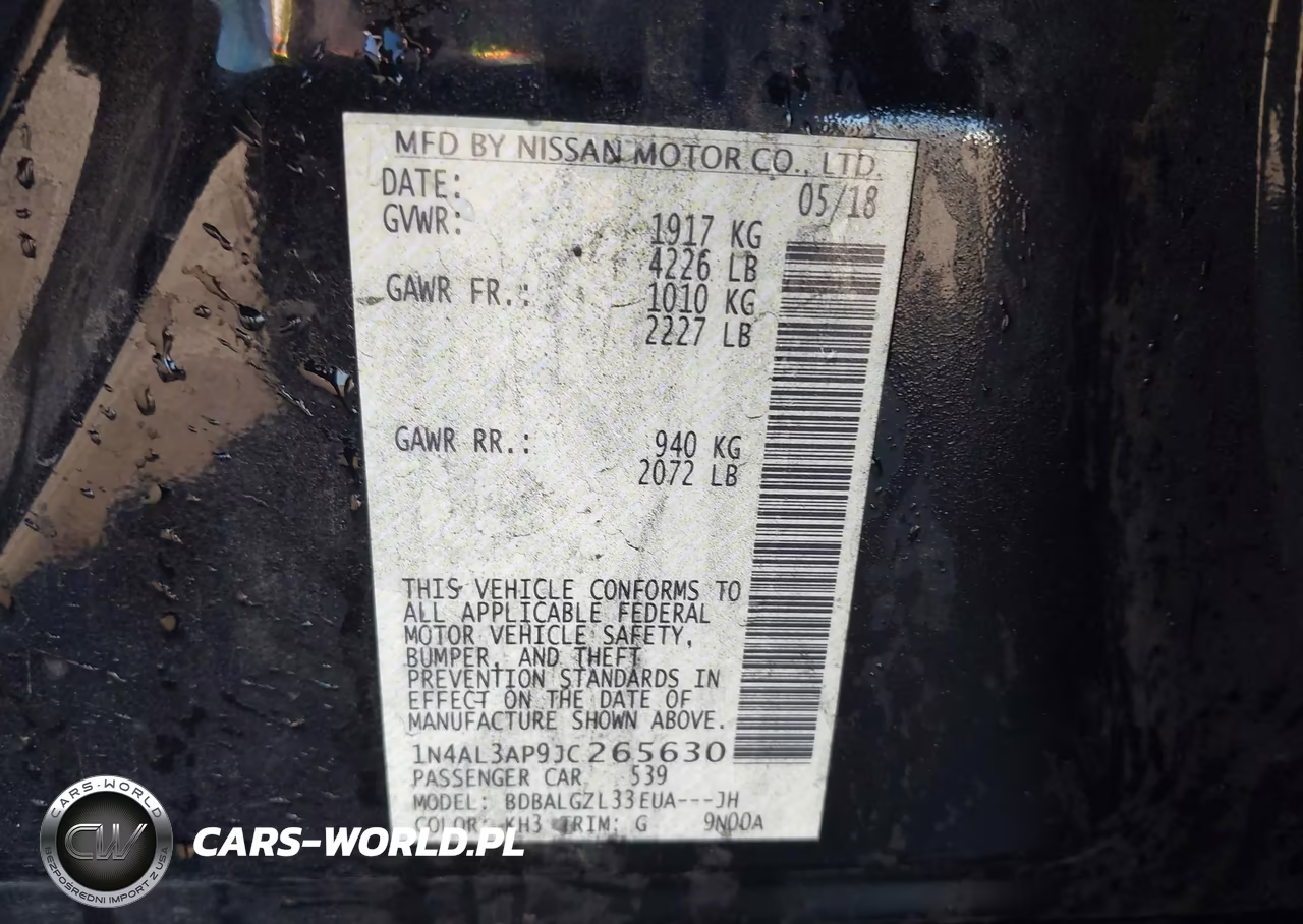 IAAI Nr: I-44674055 VIN: 1N4AL3AP9JC265630 Port: Los Angeles, CA