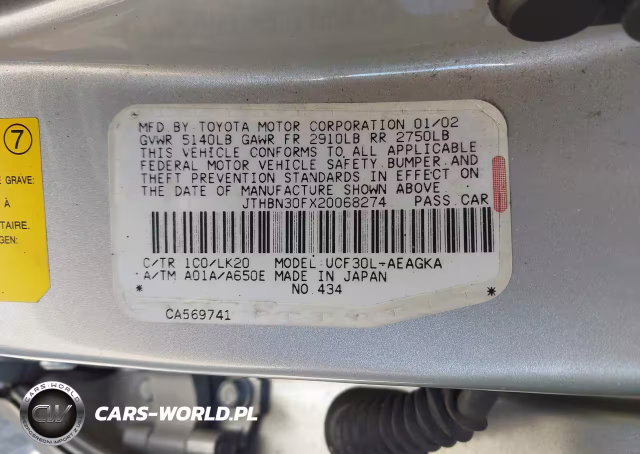 IAAI Nr: I-44674432 VIN: JTHBN30FX20068274 Port: Savannah, GA