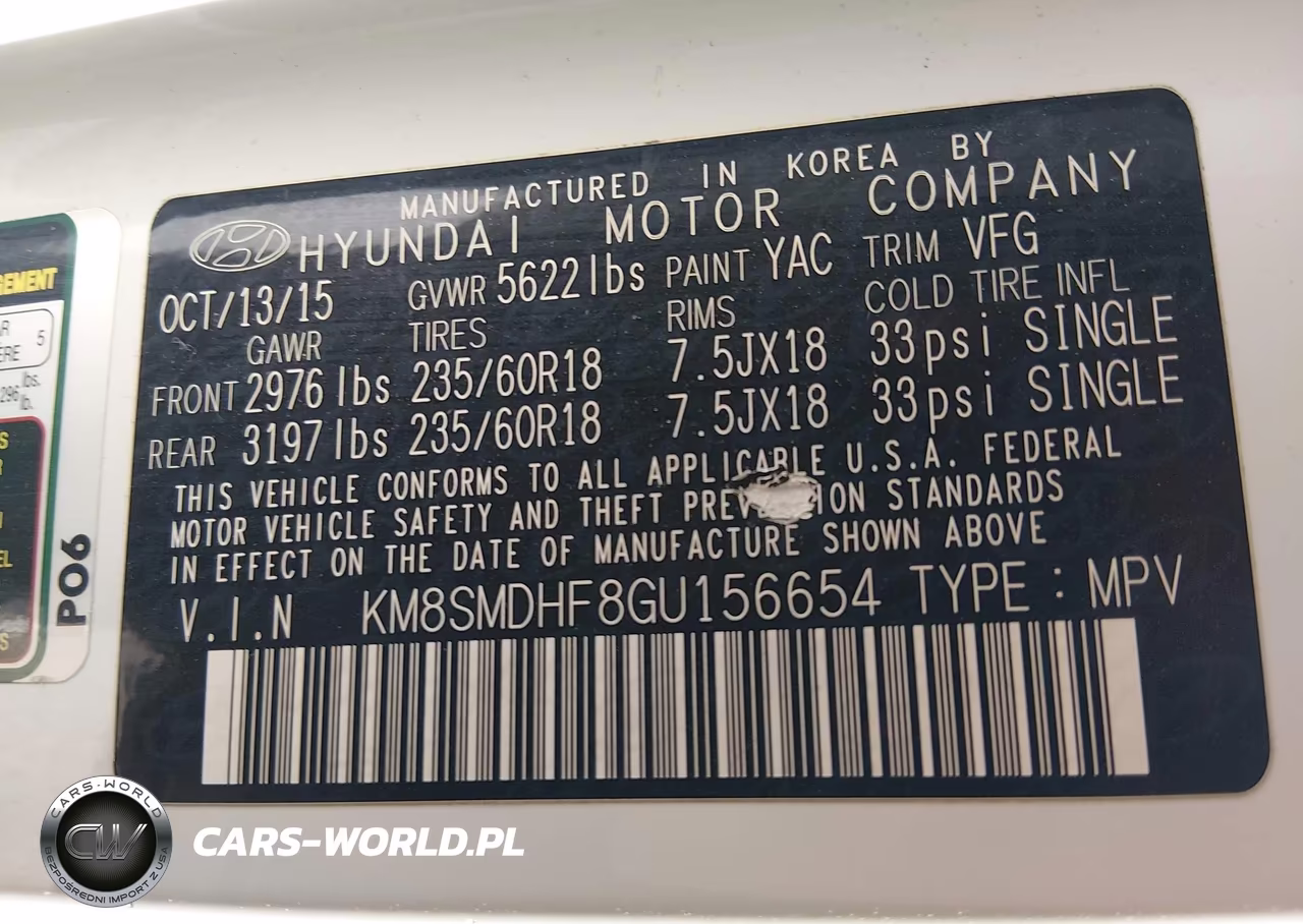 IAAI Nr: I-44675632 VIN: KM8SMDHF8GU156654 Port: Los Angeles, CA