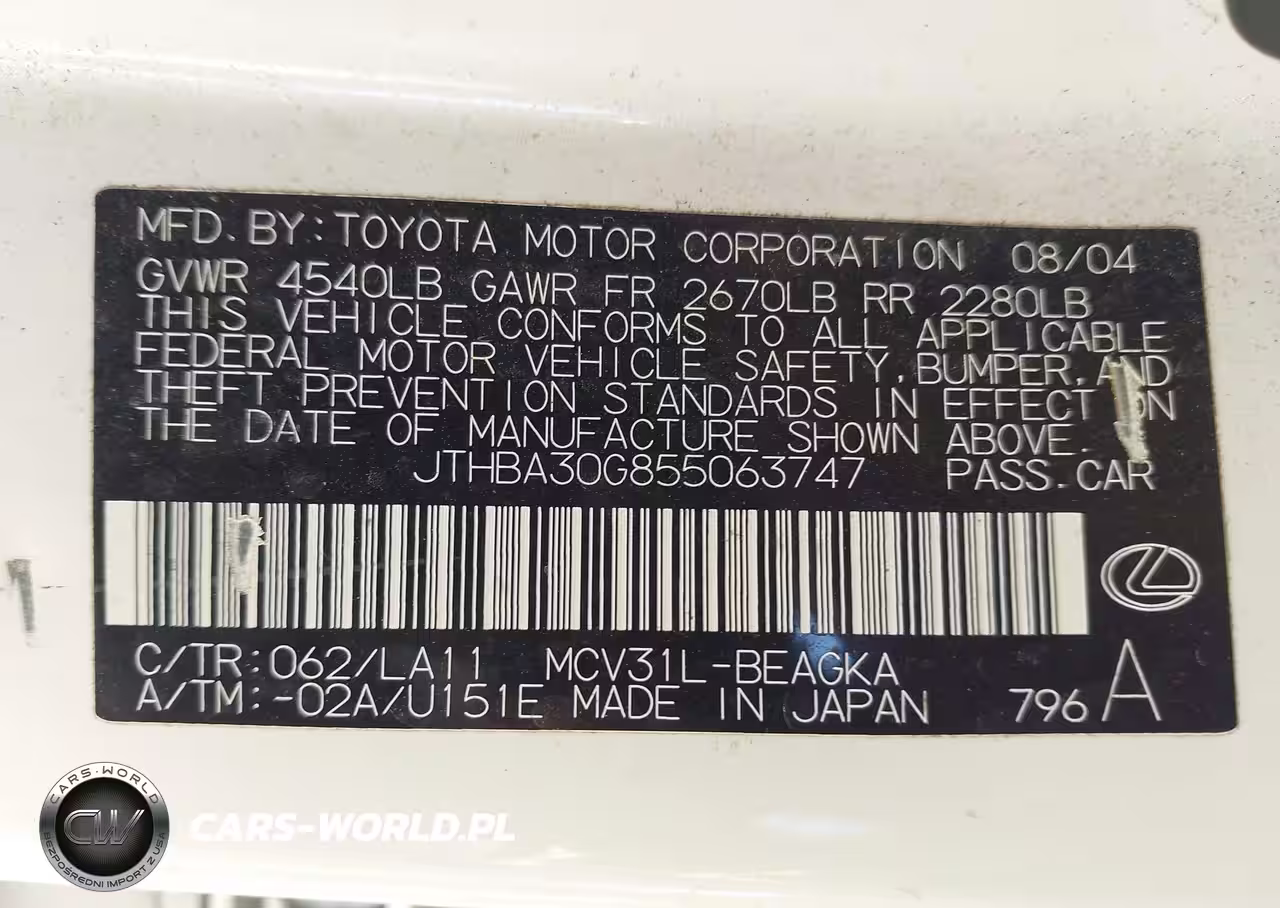 IAAI Nr: I-44675795 VIN: JTHBA30G855063747 Port: Houston, TX