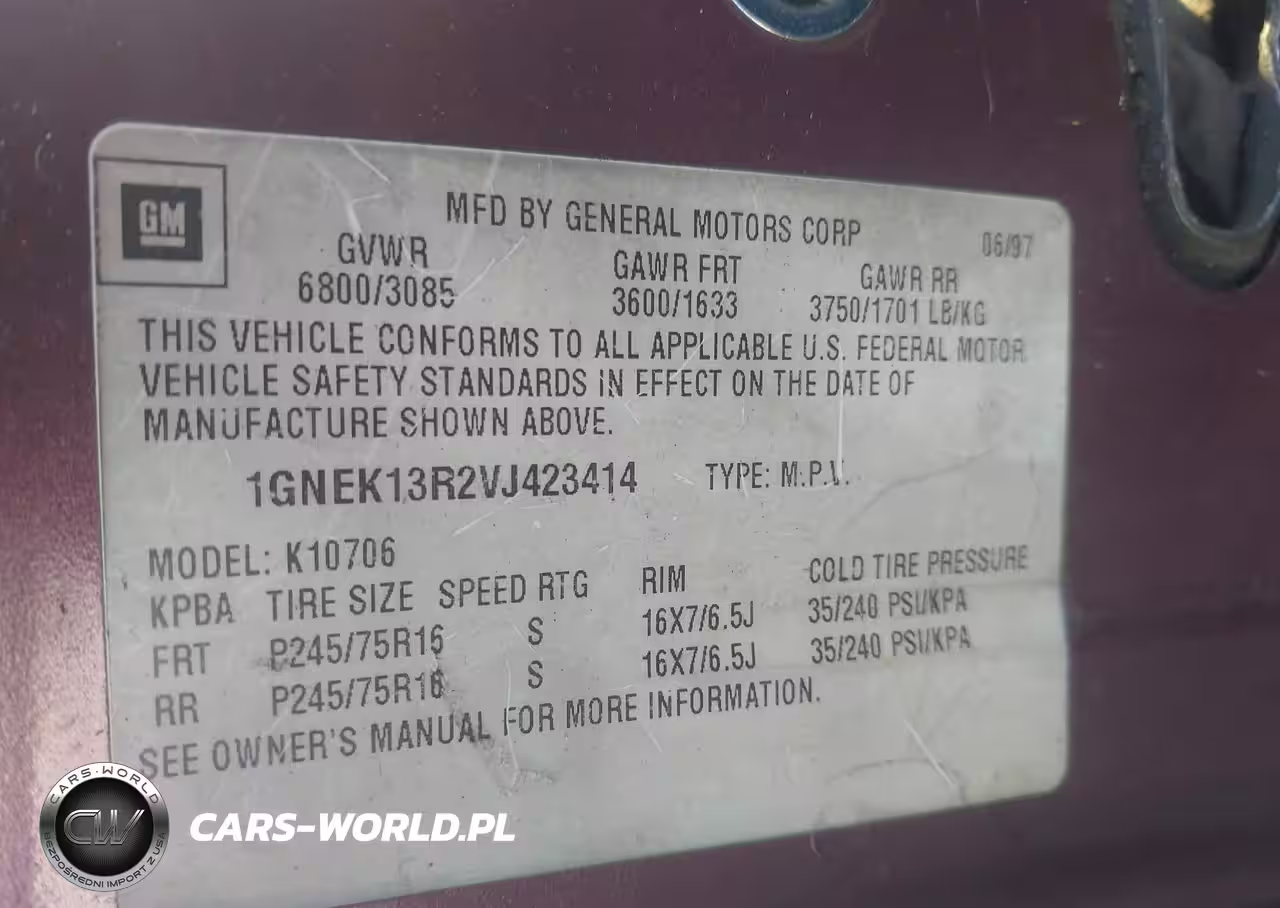 IAAI Nr: I-44675925 VIN: 1GNEK13R2VJ423414 Port: Savannah, GA