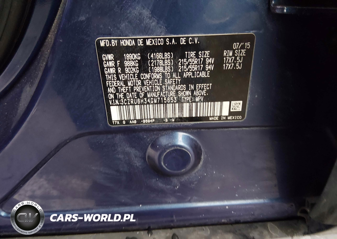 IAAI Nr: I-44676469 VIN: 3CZRU6H34GM715653 Port: Elizabeth, NJ