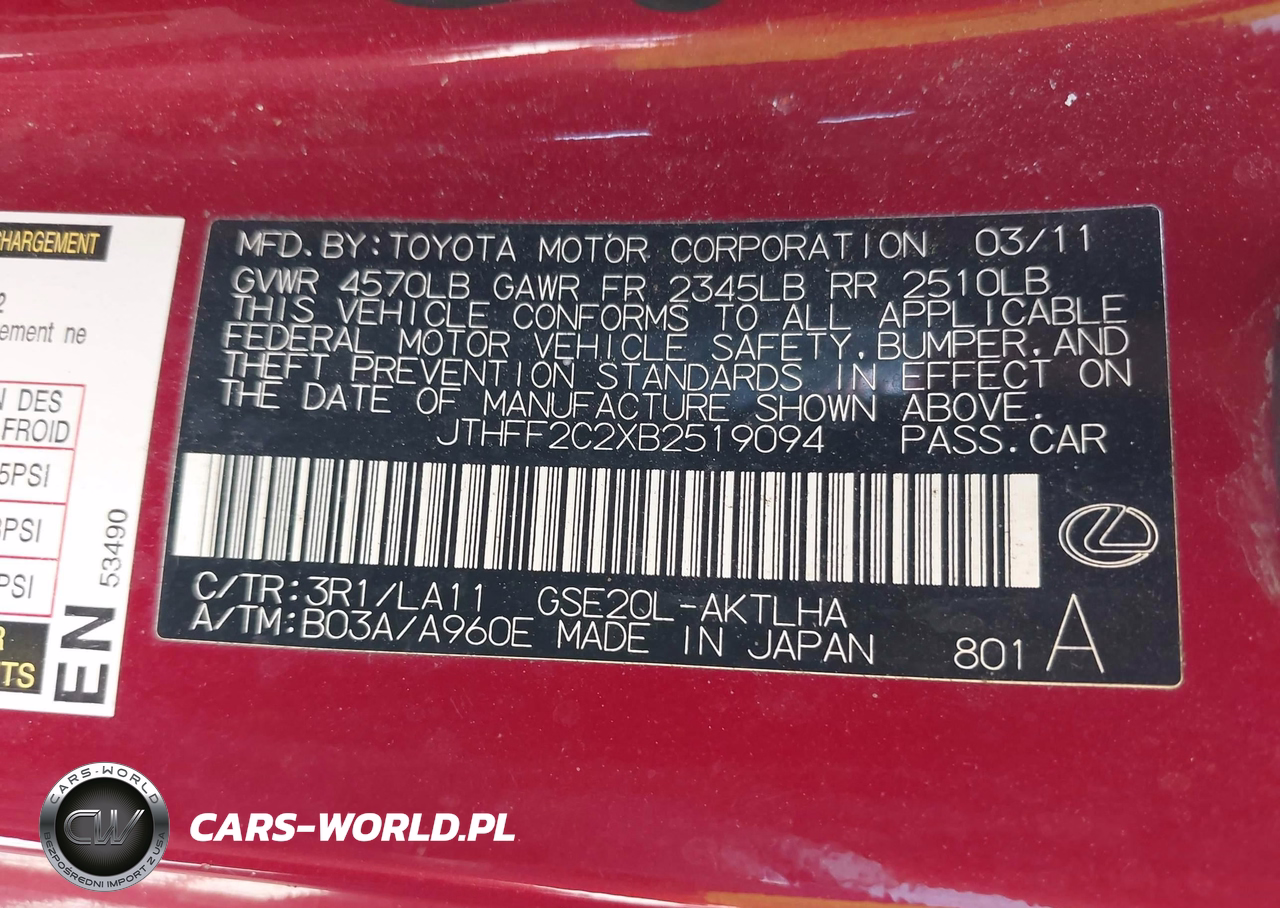 IAAI Nr: I-44676606 VIN: JTHFF2C2XB2519094 Port: Savannah, GA