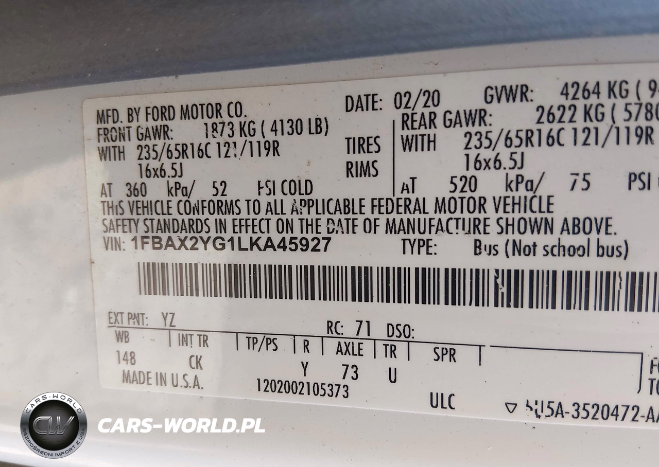IAAI Nr: I-44676879 VIN: 1FBAX2YG1LKA45927 Port: Savannah, GA