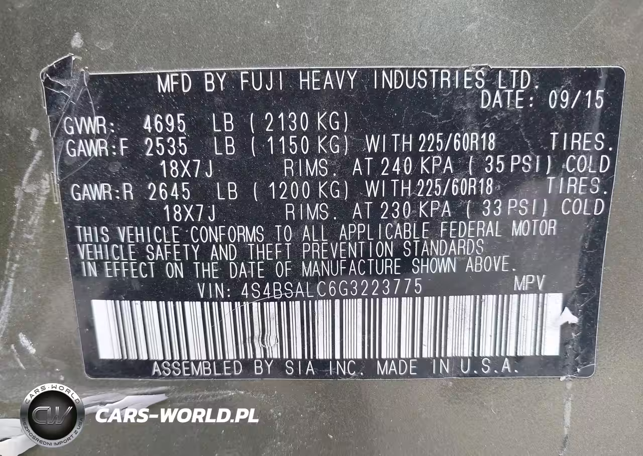 IAAI Nr: I-44677144 VIN: 4S4BSALC6G3223775 Port: Elizabeth, NJ