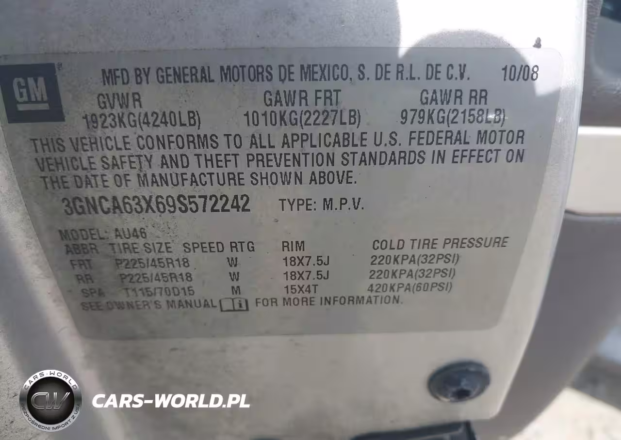 IAAI Nr: I-44677376 VIN: 3GNCA63X69S572242 Port: Indianapolis, IN