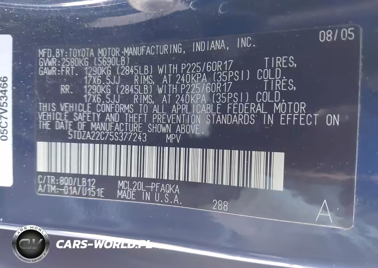 IAAI Nr: I-44677406 VIN: 5TDZA22C75S377243 Port: Savannah, GA