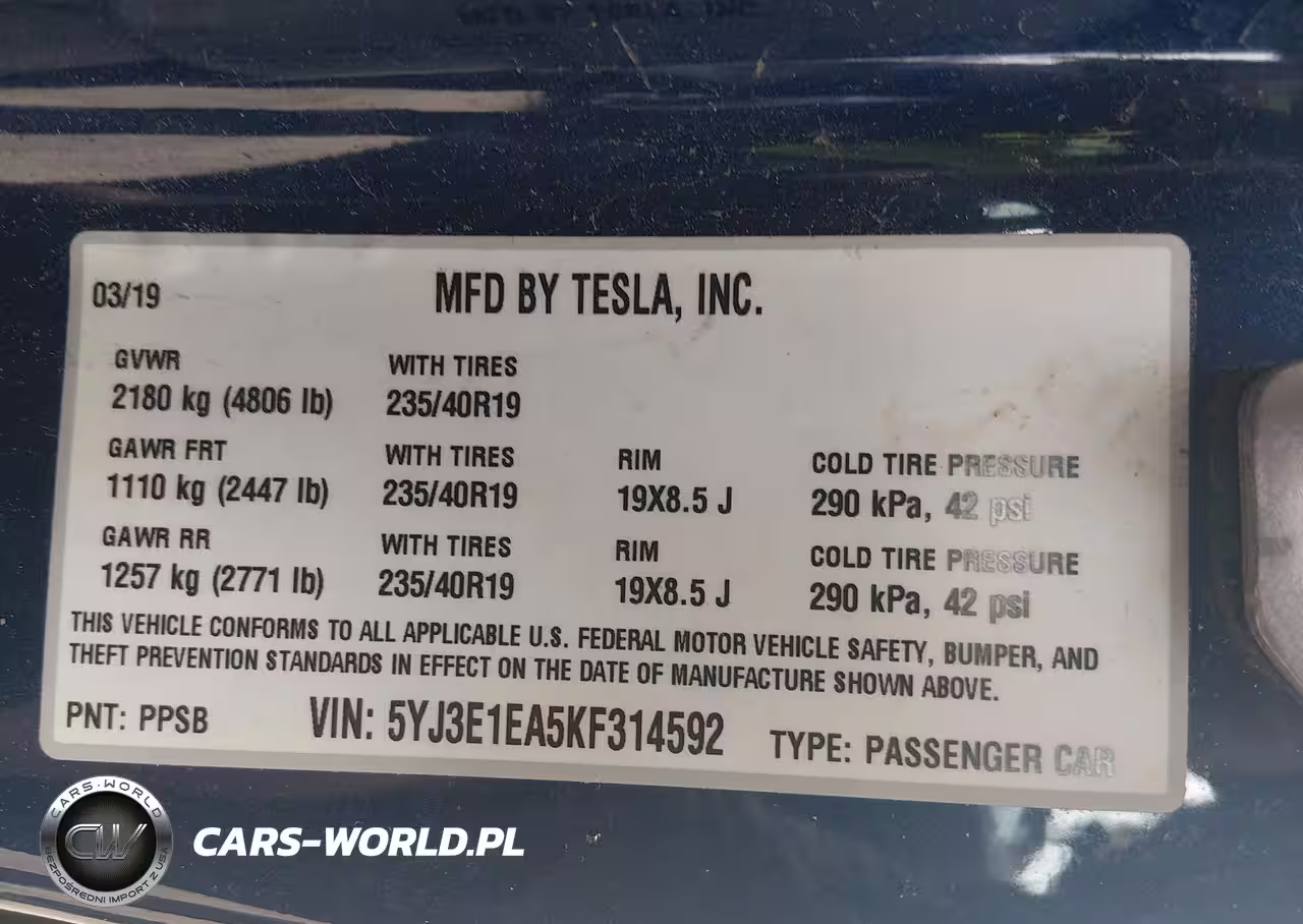 Główne zdjęcie 2019 Tesla Model 3 Long Range-Mid Range-Standard Range-Standard Range Plus