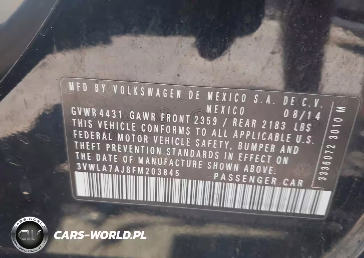 IAAI Nr: I-44677643 VIN: 3VWLA7AJ8FM203845 Port: Houston, TX
