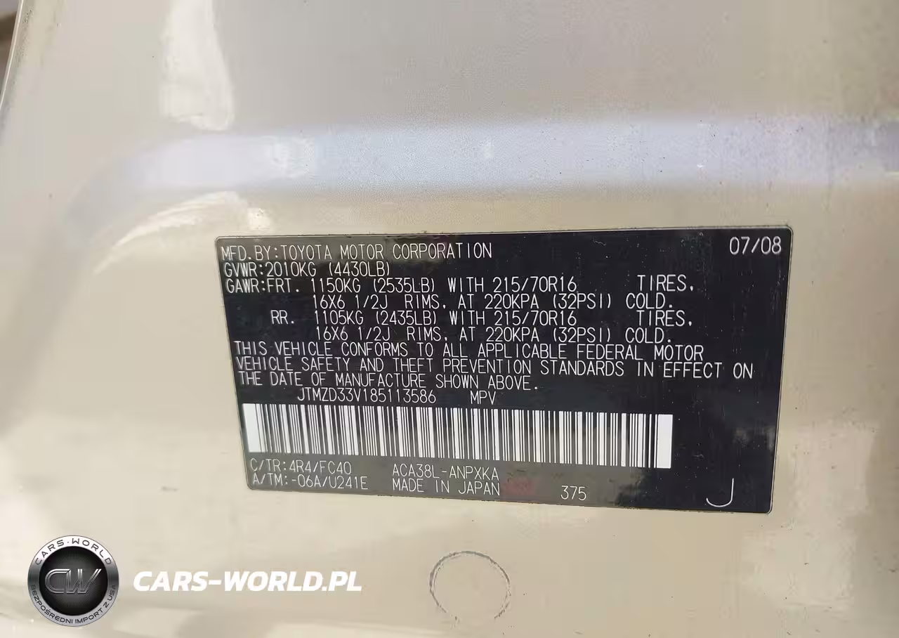 IAAI Nr: I-44678005 VIN: JTMZD33V185113586 Port: Savannah, GA