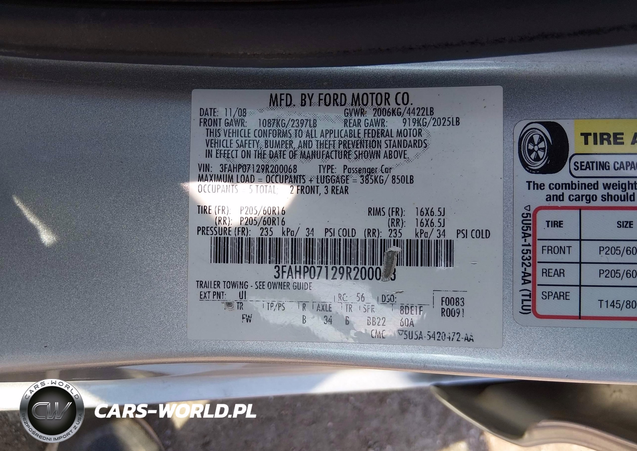 IAAI Nr: I-44678469 VIN: 3FAHP07129R200068 Port: Houston, TX