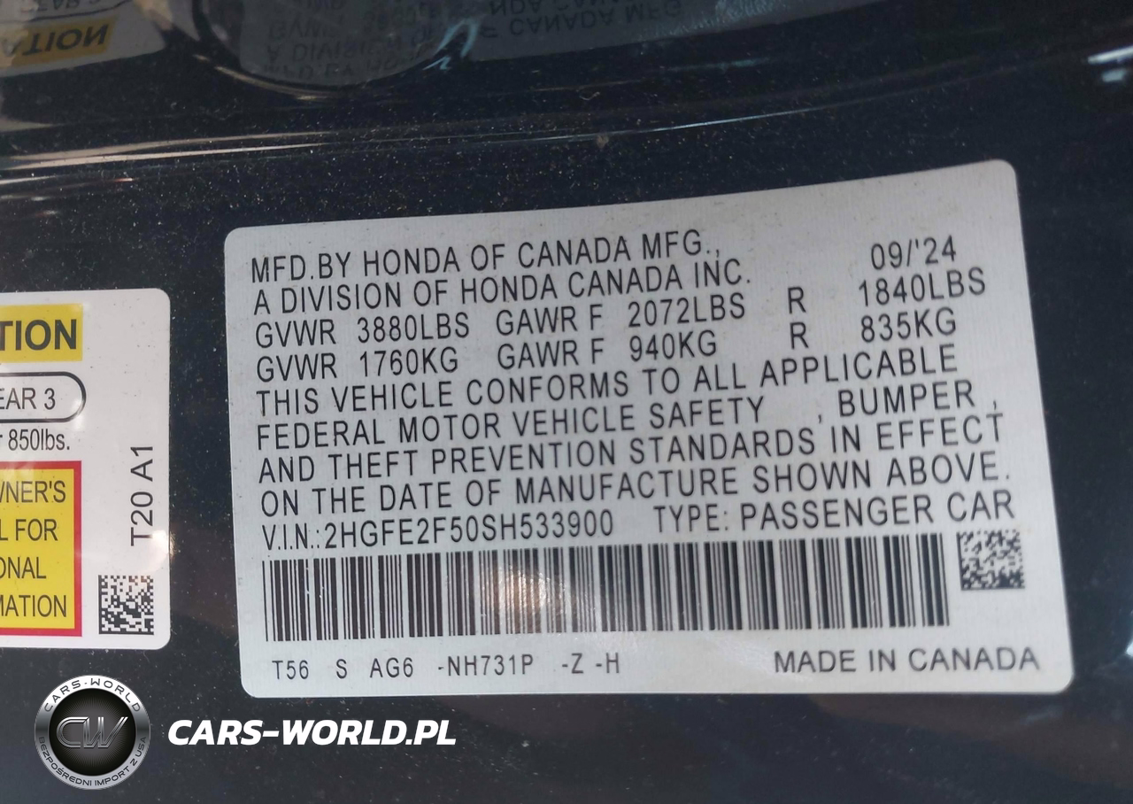IAAI Nr: I-44678923 VIN: 2HGFE2F50SH533900 Port: Elizabeth, NJ