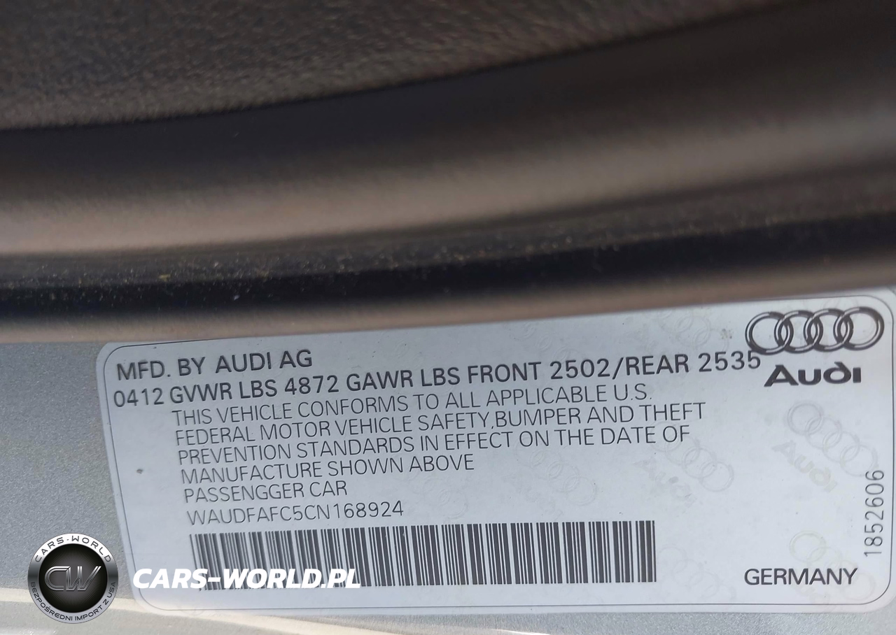 IAAI Nr: I-44679923 VIN: WAUDFAFC5CN168924 Port: Savannah, GA