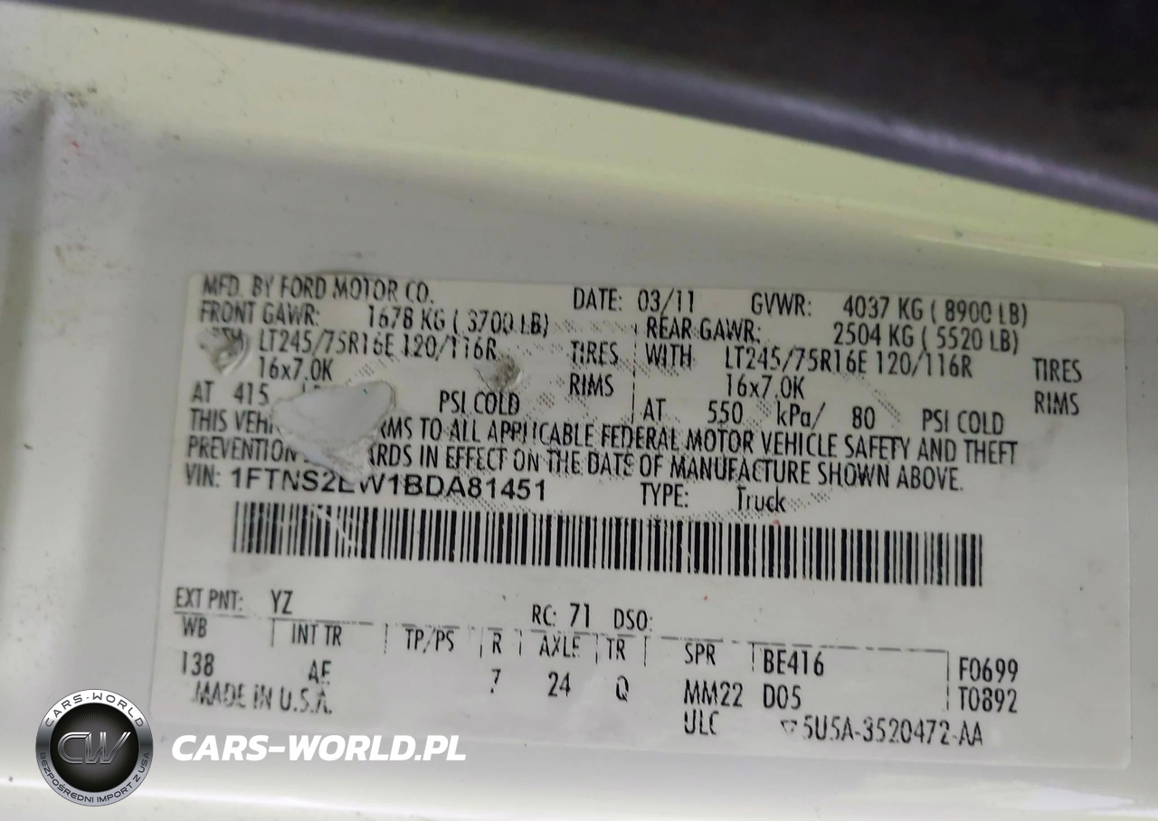 IAAI Nr: I-44680108 VIN: 1FTNS2EW1BDA81451 Port: Los Angeles, CA
