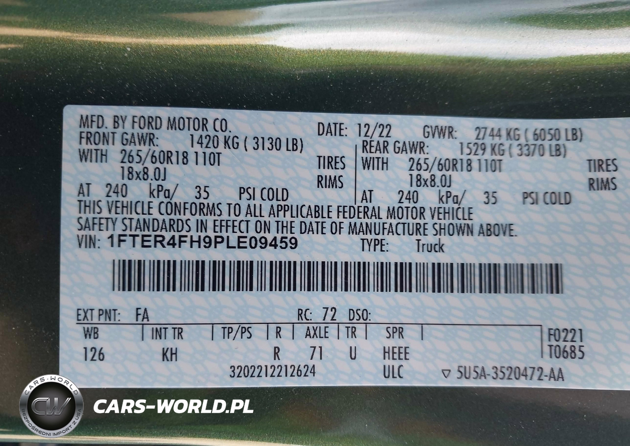 IAAI Nr: I-44680132 VIN: 1FTER4FH9PLE09459 Port: Los Angeles, CA