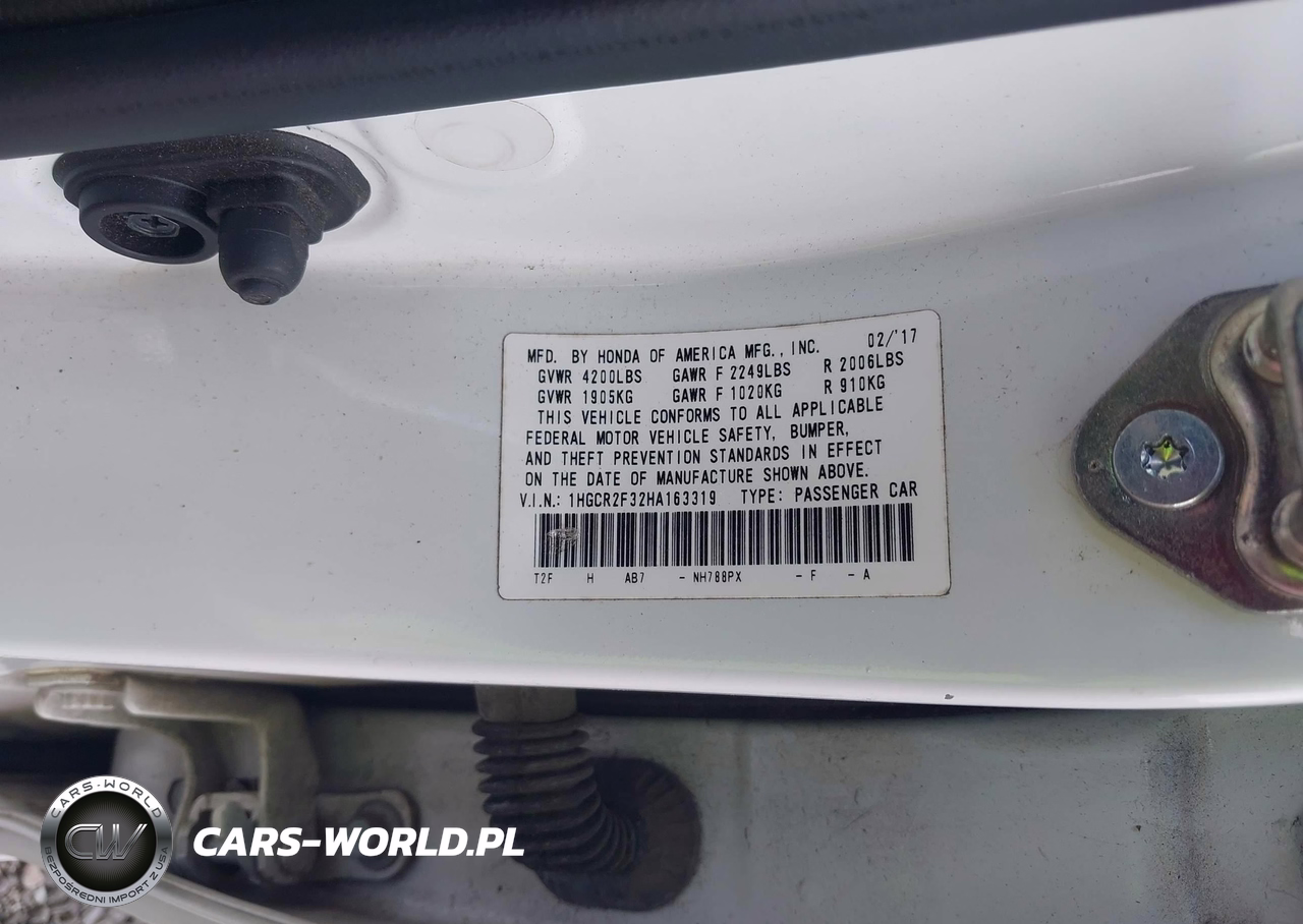 IAAI Nr: I-44680144 VIN: 1HGCR2F32HA163319 Port: Houston, TX