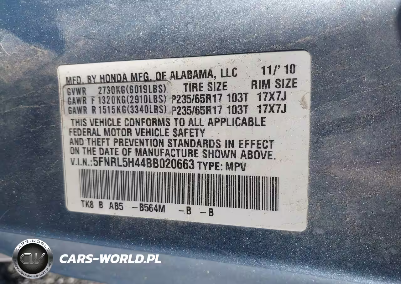 IAAI Nr: I-44681165 VIN: 5FNRL5H44BB020663 Port: Elizabeth, NJ
