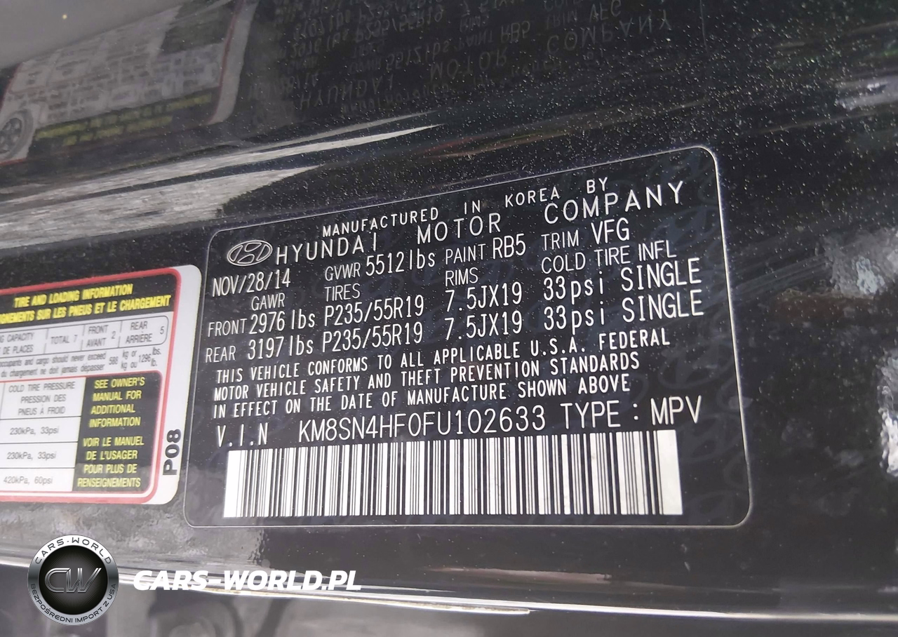 IAAI Nr: I-44681360 VIN: KM8SN4HF0FU102633 Port: Savannah, GA