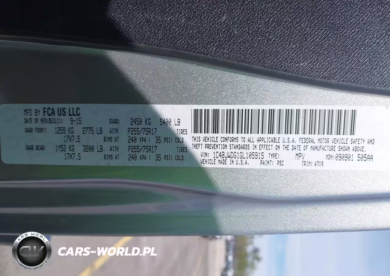 IAAI Nr: I-44681445 VIN: 1C4BJWDG1GL105915 Port: Savannah, GA
