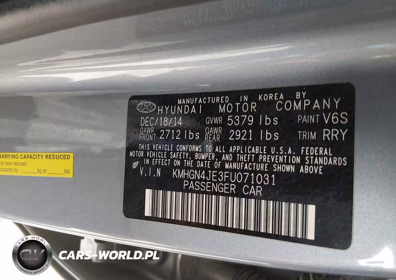 IAAI Nr: I-44681545 VIN: KMHGN4JE3FU071031 Port: Savannah, GA