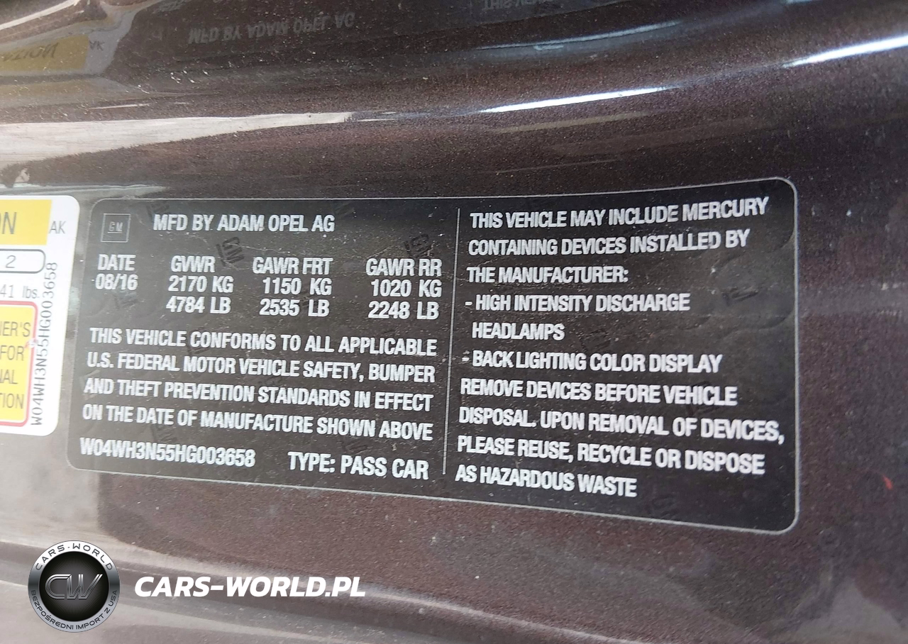 IAAI Nr: I-44682174 VIN: W04WH3N55HG003658 Port: Elizabeth, NJ