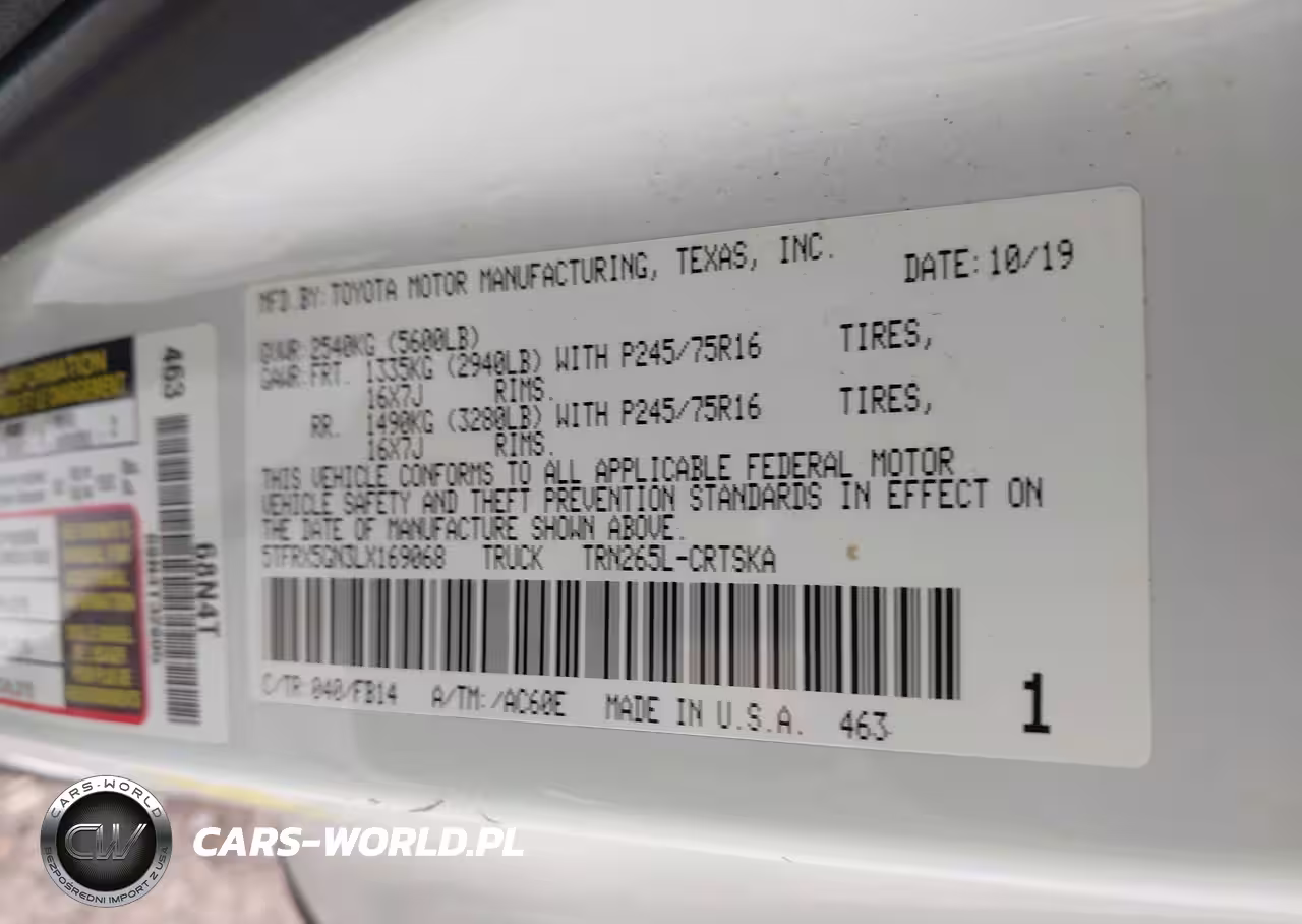 IAAI Nr: I-44683318 VIN: 5TFRX5GN3LX169068 Port: Savannah, GA