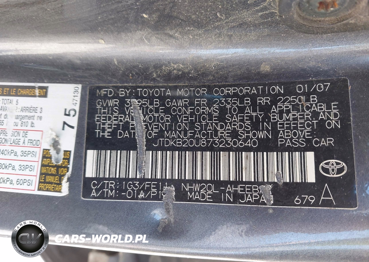 IAAI Nr: I-44683364 VIN: JTDKB20U873230640 Port: Elizabeth, NJ