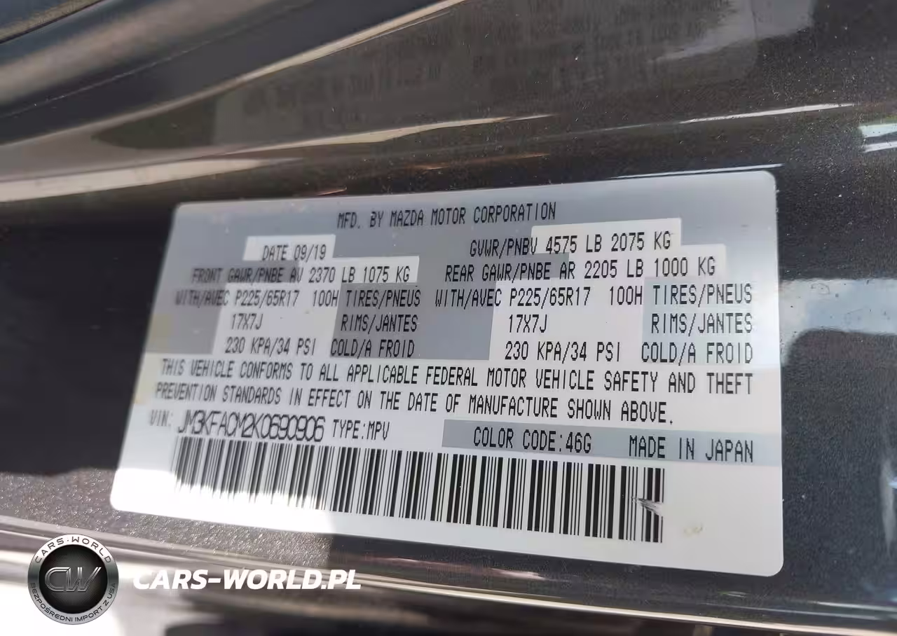 IAAI Nr: I-44683515 VIN: JM3KFACM2K0690906 Port: Savannah, GA