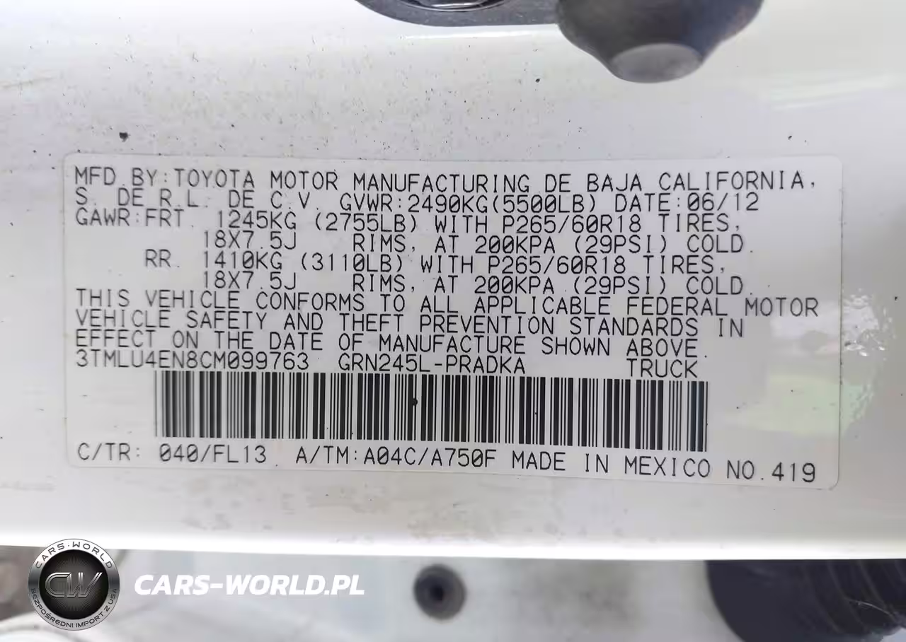 IAAI Nr: I-44683906 VIN: 3TMLU4EN8CM099763 Port: Indianapolis, IN