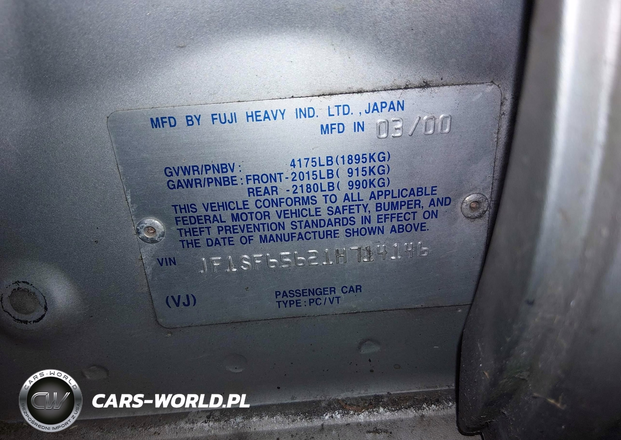 IAAI Nr: I-44684452 VIN: JF1SF65621H714146 Port: Los Angeles, CA