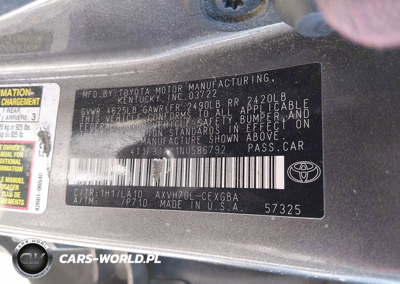 IAAI Nr: I-44684625 VIN: 4T1F31AK1NU586792 Port: Indianapolis, IN