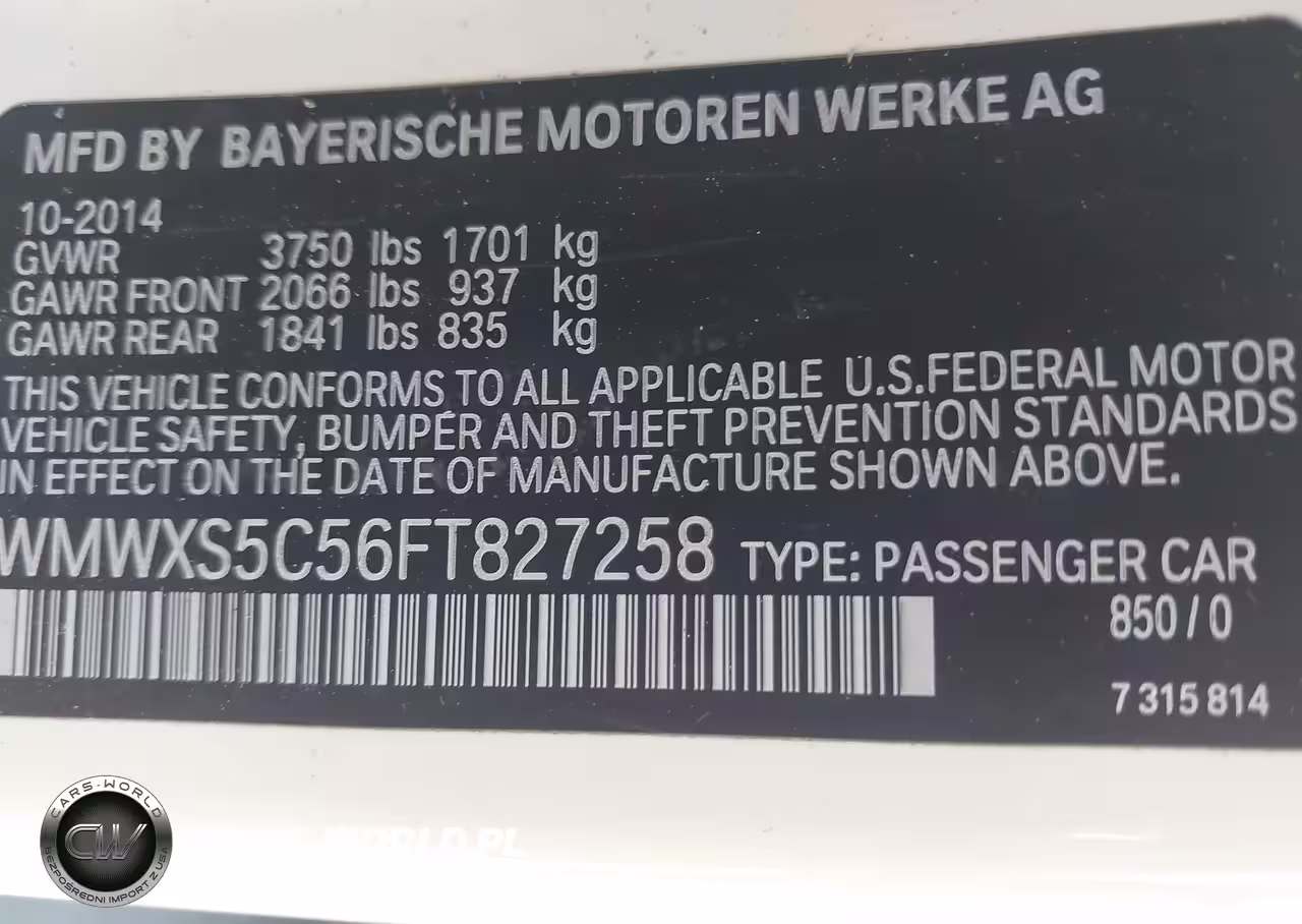 IAAI Nr: I-44685227 VIN: WMWXS5C56FT827258 Port: Los Angeles, CA
