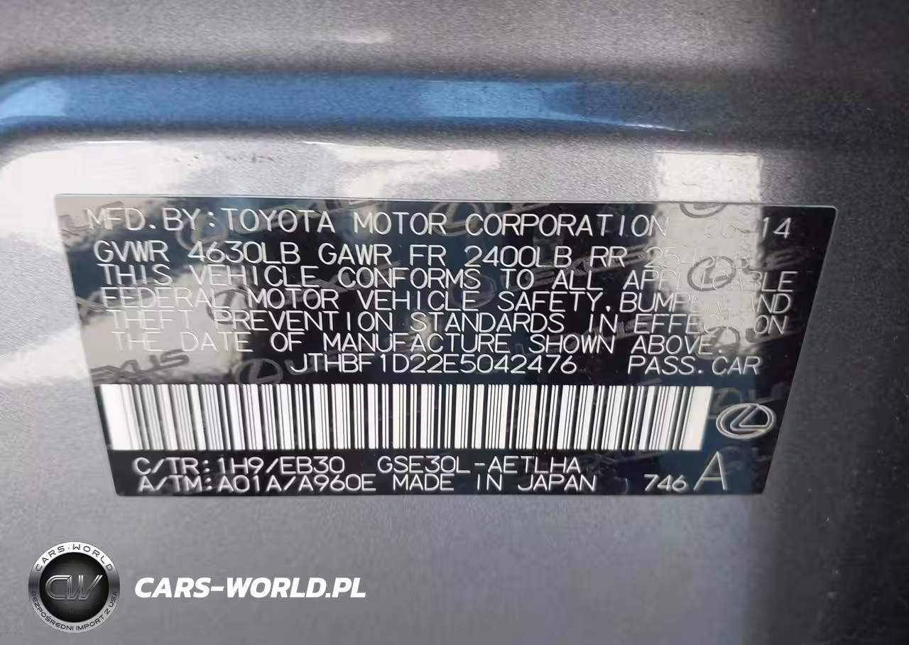 IAAI Nr: I-44685377 VIN: JTHBF1D22E5042476 Port: Los Angeles, CA