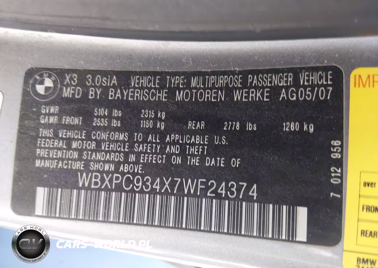Główne zdjęcie 2007 BMW X3 3.0Si