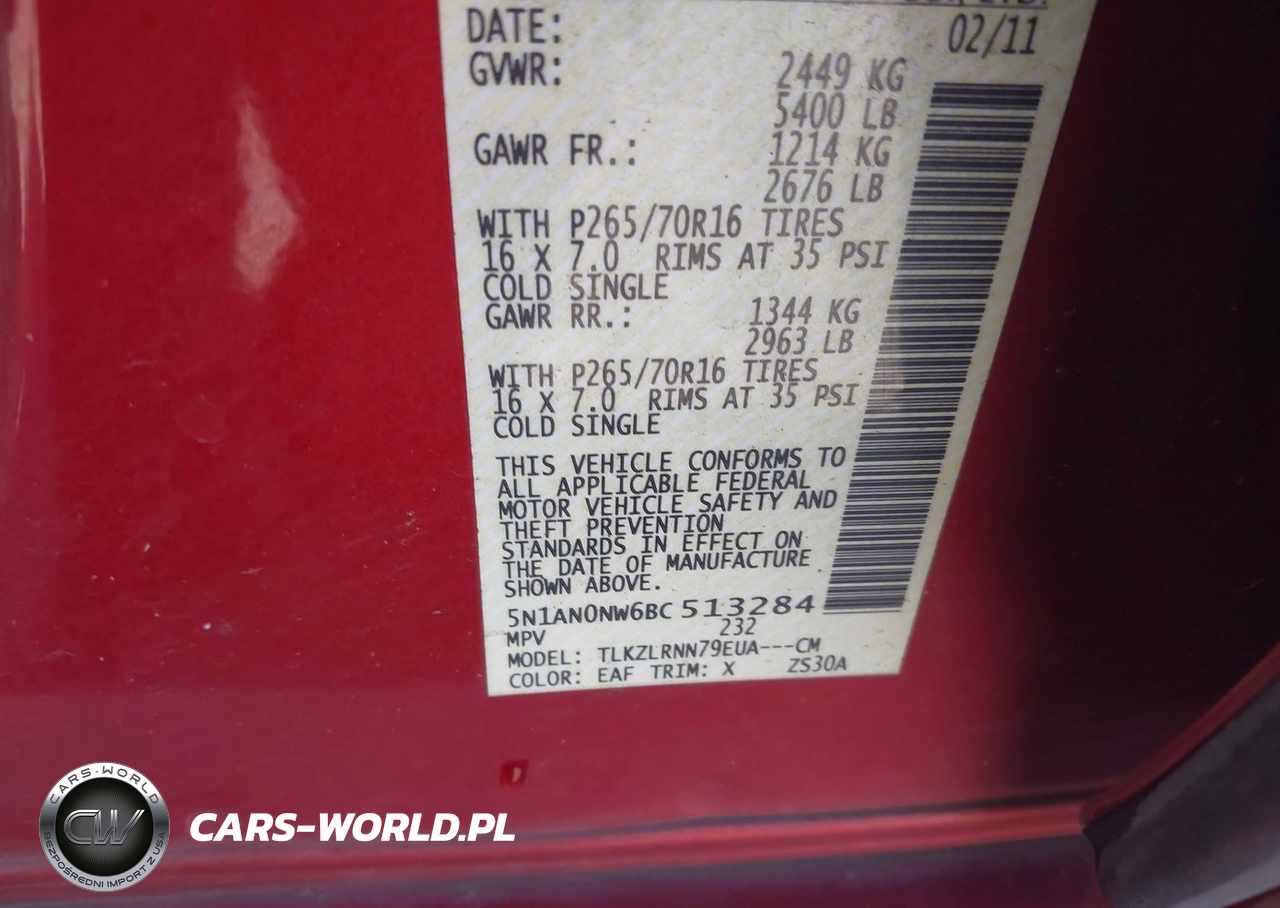 IAAI Nr: I-44686312 VIN: 5N1AN0NW6BC513284 Port: Los Angeles, CA