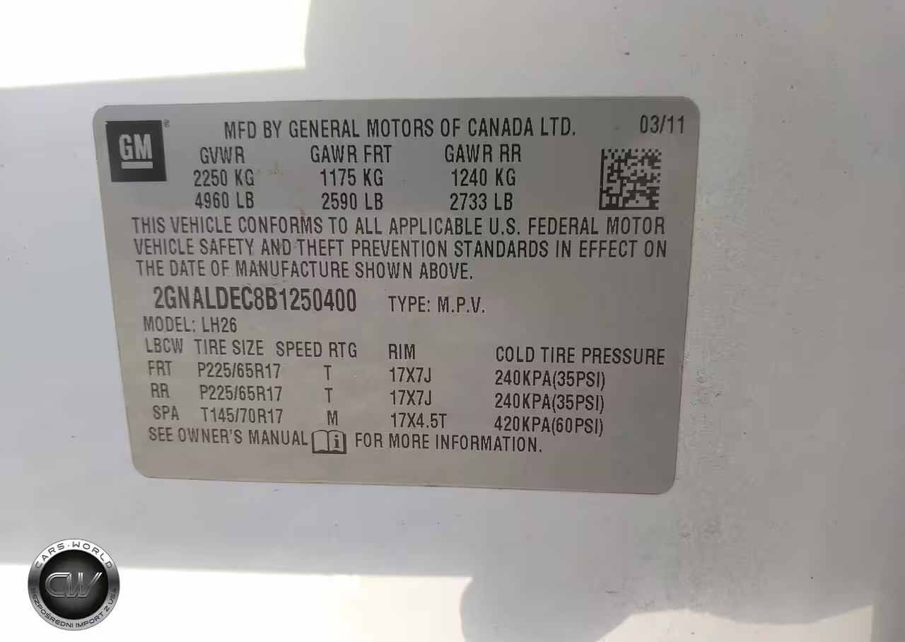 IAAI Nr: I-44686386 VIN: 2GNALDEC8B1250400 Port: Savannah, GA