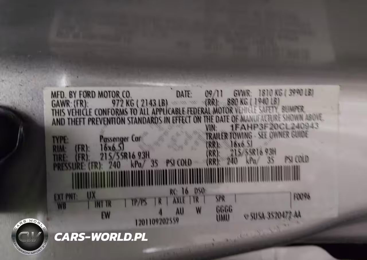 IAAI Nr: I-44686841 VIN: 1FAHP3F20CL240943 Port: Elizabeth, NJ