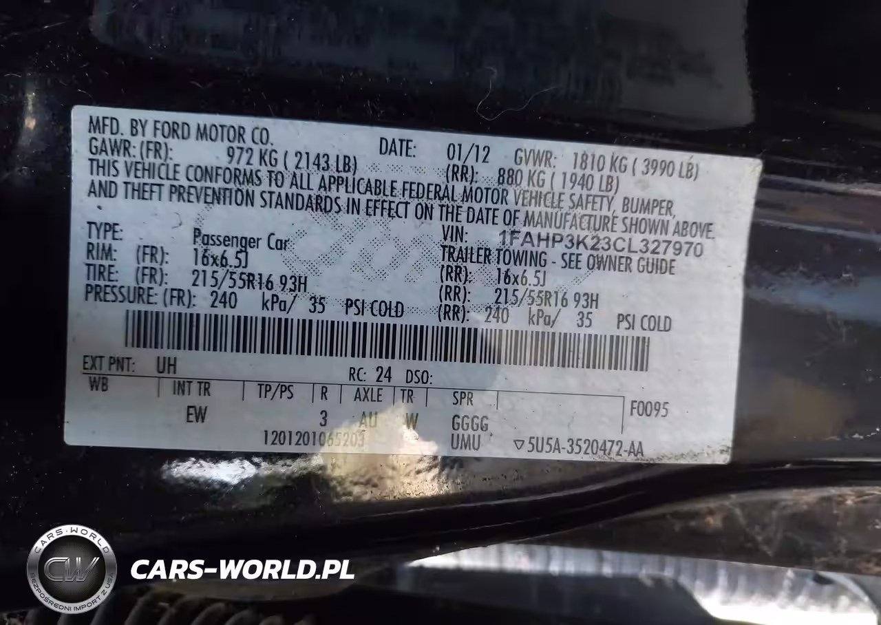 IAAI Nr: I-44687224 VIN: 1FAHP3K23CL327970 Port: Indianapolis, IN